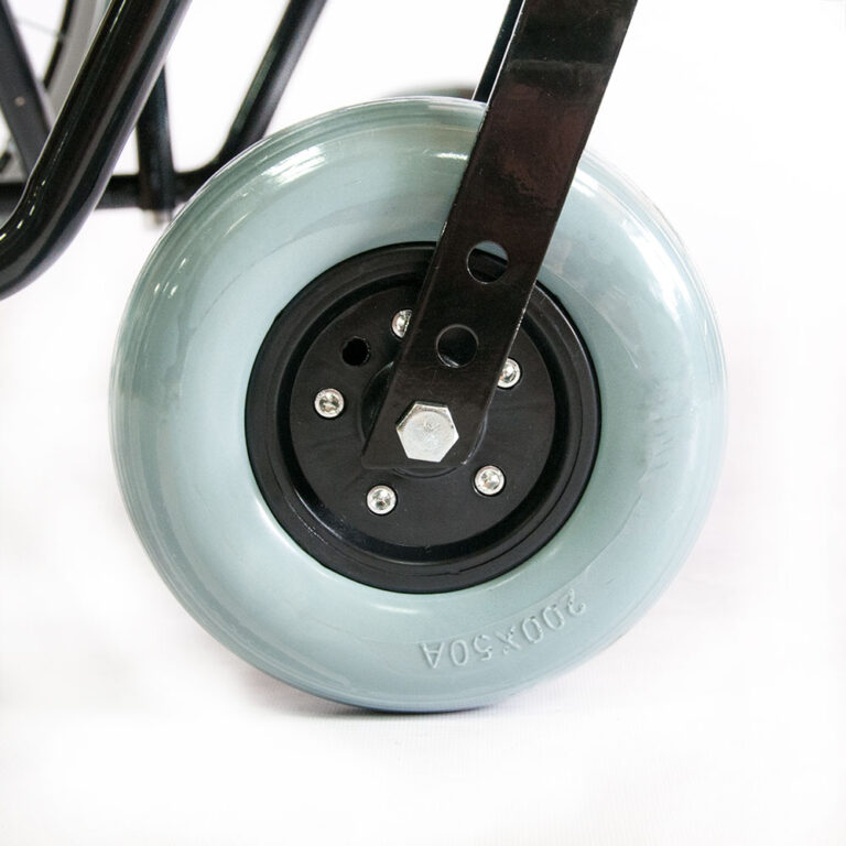 - Для эффективного и продолжительного срока службы колес в них установлены пневматические усиленные шины на основе устойчивой к износу резины. Ко всему прочему, следов на полу такая резина не оставляет.