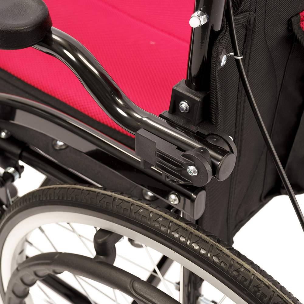 - Откидные подлокотники. Упрощают посадку и высадку и дают возможность подъехать вплотную к столу или другой поверхности.