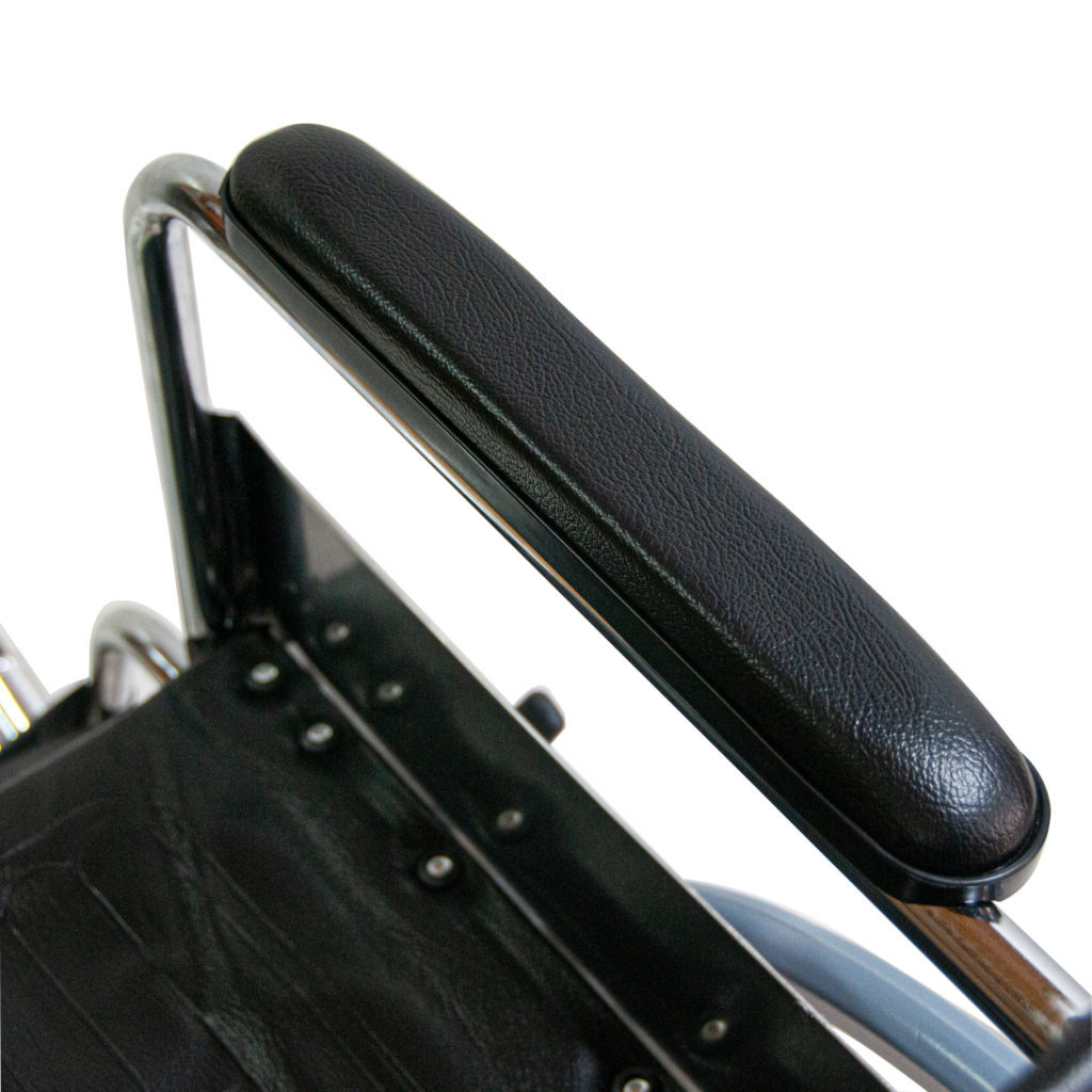 - Повышенный комфорт. Подлокотники из искусственной кожи и регулирующиеся подножки с опорой для ног делают поездку удобной и комфортной.