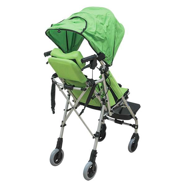 Конструкция складная, рама выполнена из стали с хромовым покрытием; коляска оборудована откидными подлокотниками с мягкими накладками, съемным столиком. Абдуктор, подголовник и боковые фиксаторы для туловища крепятся к креслу с помощью липучек.СПИНКА
