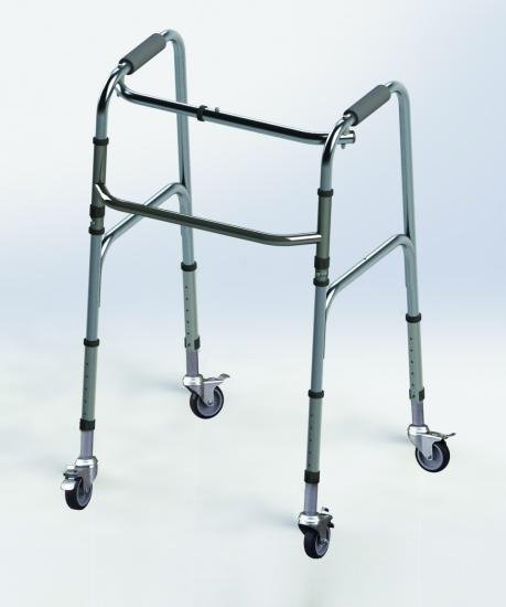 - Повышенная подвижность, отличная маневренность и надёжная тормозная система. Установлено 4 колеса, которые вращаются в разные стороны на 360 градусов. Они небольшие, позволяют быстро направить ходунки в необходимое направление. При желании, каждое колесо можно заблокировать.