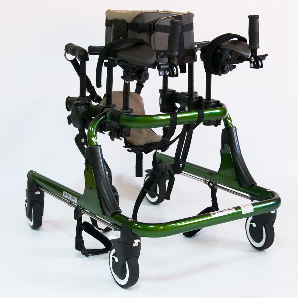 Многофункциональные, модульные опоры-ходунки для развития навыков ходьбы у детей и взрослых с ДЦП, а также пациентов с различными нарушениями функций опорно-двигательного аппарата. Опоры-ходунки оснащены полным набором приспособлений для фиксации различных частей тела в правильном положении. Все приспособления легко крепятся и снимаются, позволяя собирать ходунки, как конструктор, соответственно потребностям конкретного пациента на различных стадиях реабилитации. Все фиксаторы регулируются по нескольким параметрам для максимально точной подгонки ходунков под анатомические особенности пациента. Ходунки выпускаются в трех размерах и могут использоваться как в реабилитационных центрах, так и в домашних условиях.
