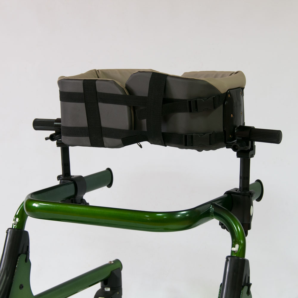 Мягкий фиксатор грудной клетки поддерживает туловище в требуемом положении. Высота фиксатора, угол его крепления и объем (под различные размеры туловища) регулируются. Все регулировки осуществляются, когда пациент находится в опорах-ходунках, что обеспечивает максимальную точность подгонки.