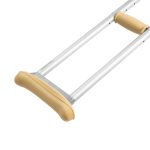 - Регулировка ручек. Верхняя часть костылей регулируется винтовым механизмом, нижняя — кнопочным, обеспечивая точную подгонку и комфорт при ходьбе.