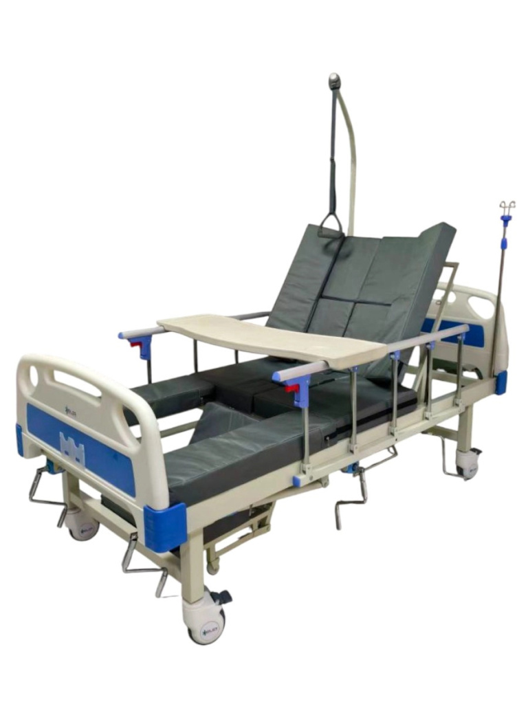 Кровать медицинская функциональная механическая Heiler BH113 сочетает ключевые возможности для комфортного ухода: трансформацию в кардио-кресло, механическое переворачивание пациента, встроенное санитарное оснащение и современный эргономичный дизайн.