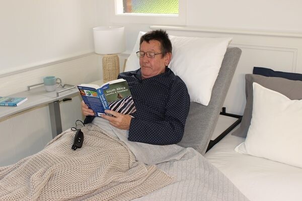 Модель предназначена для комфортного размещения лежачих пациентов, обеспечивая плавное изменение наклона спинки от 5 до 70 градусов через дистанционное управление. Это решение упрощает повседневный уход, создавая удобные условия для приёма пищи, чтения или отдыха. Возможность питания как от электросети, так и от батареек типа Крона позволяет использовать устройство независимо от наличия розеток.