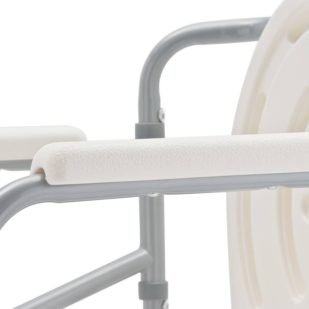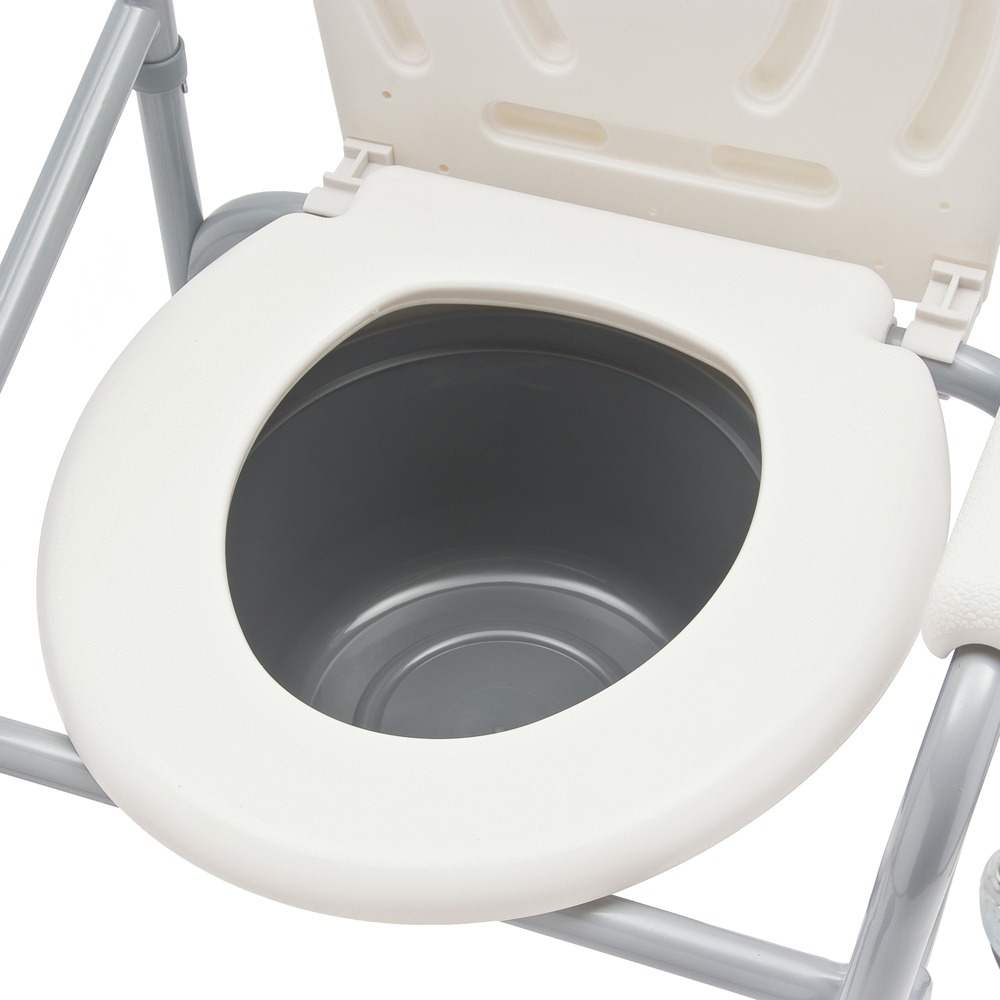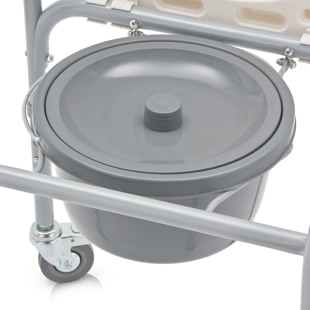 Высота Армед FS696 регулируется кнопочным фиксатором, имеющим 7 уровней для комфортного пребывания пациента и возможности устанавливать кресло над унитазом любого типа. Армед FS696 оборудован удобным стульчаком с накладной герметично прилегающей и защищающей пациента от неприятных запахов крышкой и санитарным приемником, изготовленным из моющегося пластика.