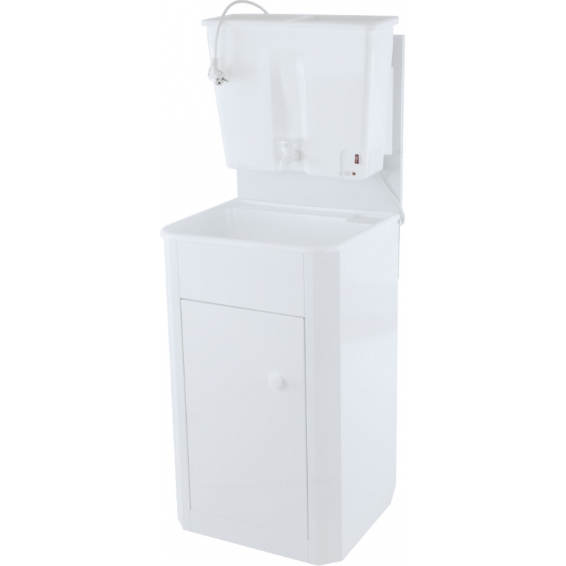 Стандартная комплектация - конструкция, дополненная резервуаром для воды с краном. Во внутренней части умывальника расположена спираль ТЭНа, осуществляющая нагрев воды. Нижняя часть умывальника оснащена местом для емкости, куда сливается использованная вода. Для подогрева воды необходимо соединение с электрической сетью.