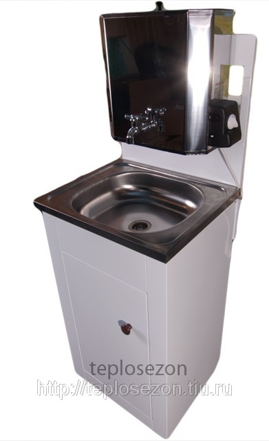 мойка и бачок из нержавеющей стали, тумба металлическая, терморегулятор с правой стороны |